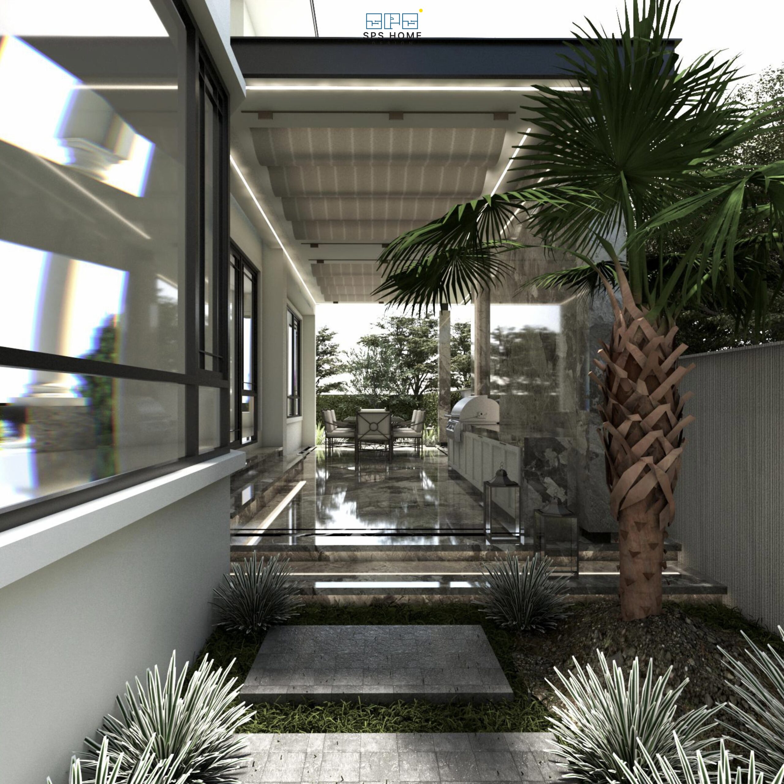 บริเวณนอกบ้าน ออกแบบ 3D