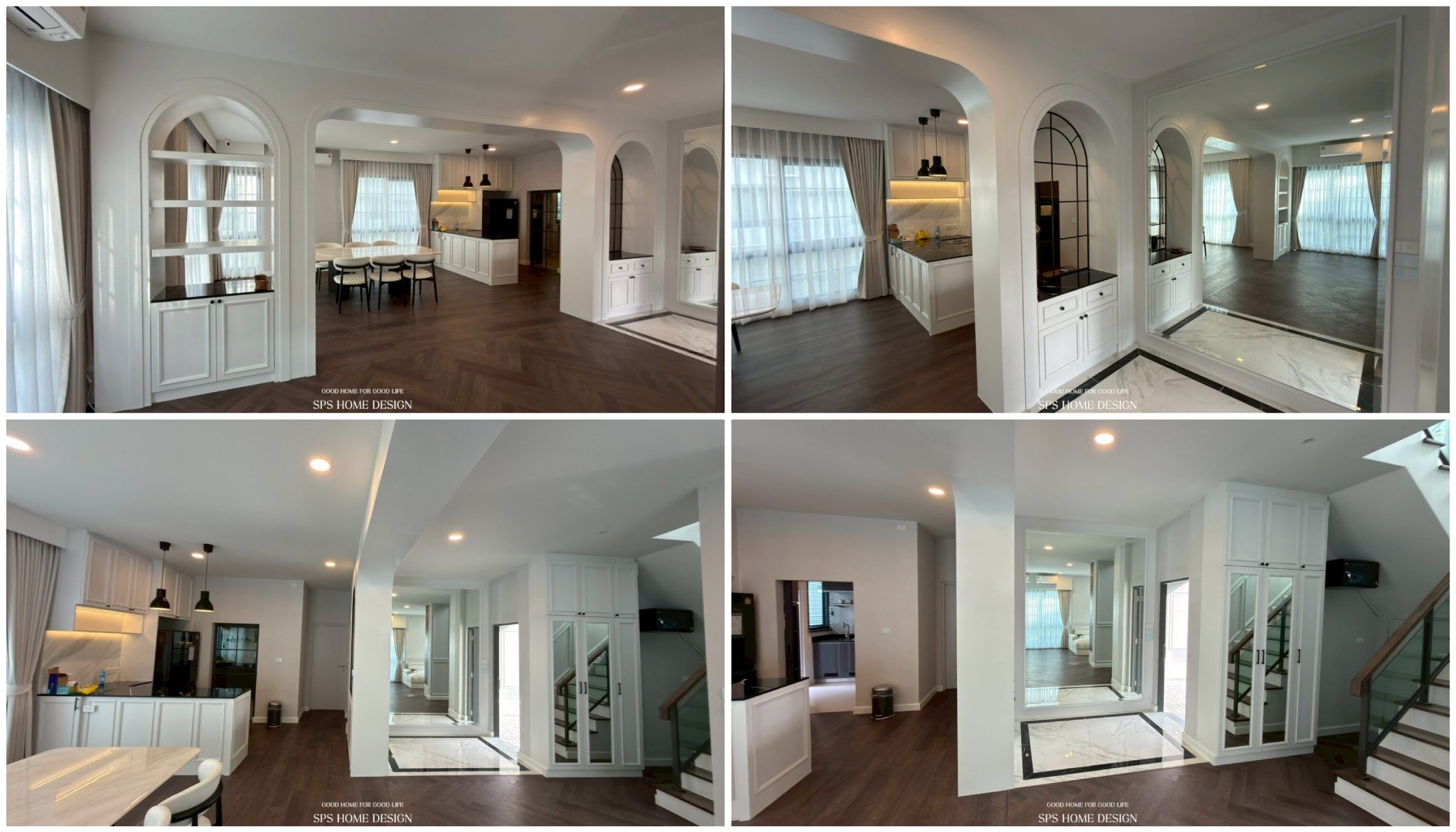 เป็นโซนเชื่อมต่อระหว่างห้องรับแขกและโซนทานอาหาร ออกแบบให้กั้นพื้นที่อย่างเป็นสัดส่วน แต่ยังคงความโปร่ง โล่ง และไหลลื่นของพื้นที่ภายในบ้าน ซึ่งโดยรวมโซนนี้ถือเป็นอีกจุดสำคัญที่ช่วยยกระดับภาพรวมของบ้านให้ดูหรู มีมิติ และใช้งานได้จริงในทุกวันครับ