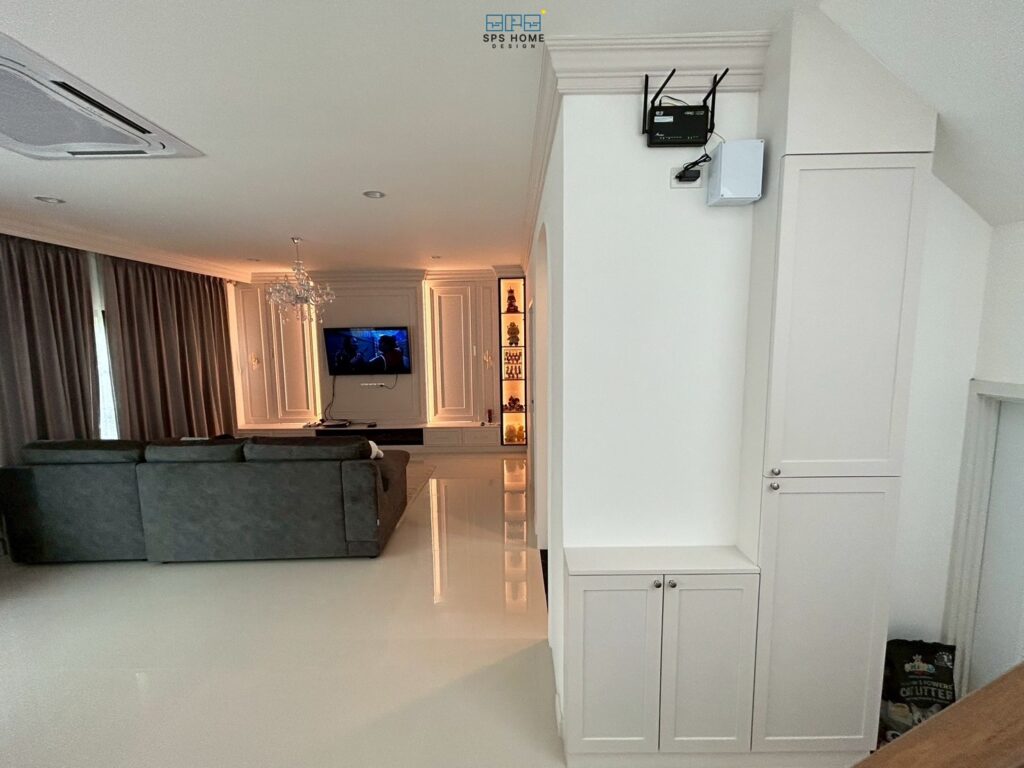 วัดระยะหน้างานให้แม่นยำ: ตรวจสอบตำแหน่งปลั๊กไฟ ท่อน้ำ และสวิตช์ไฟเดิม เพราะงานบิ้วอินมักจะไปบังจุดเหล่านี้ หากไม่วางแผนย้ายจุดก่อนจะทำให้ใช้งานลำบาก
